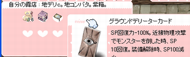 一樹BSが狩場放置だったりで、露店できる子がケミコだけだったので・・・