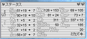 LUKに振って、クリティカルが73になりましたヽ(∀゚ )人(゚∀゚)人( ゚∀)ノ
